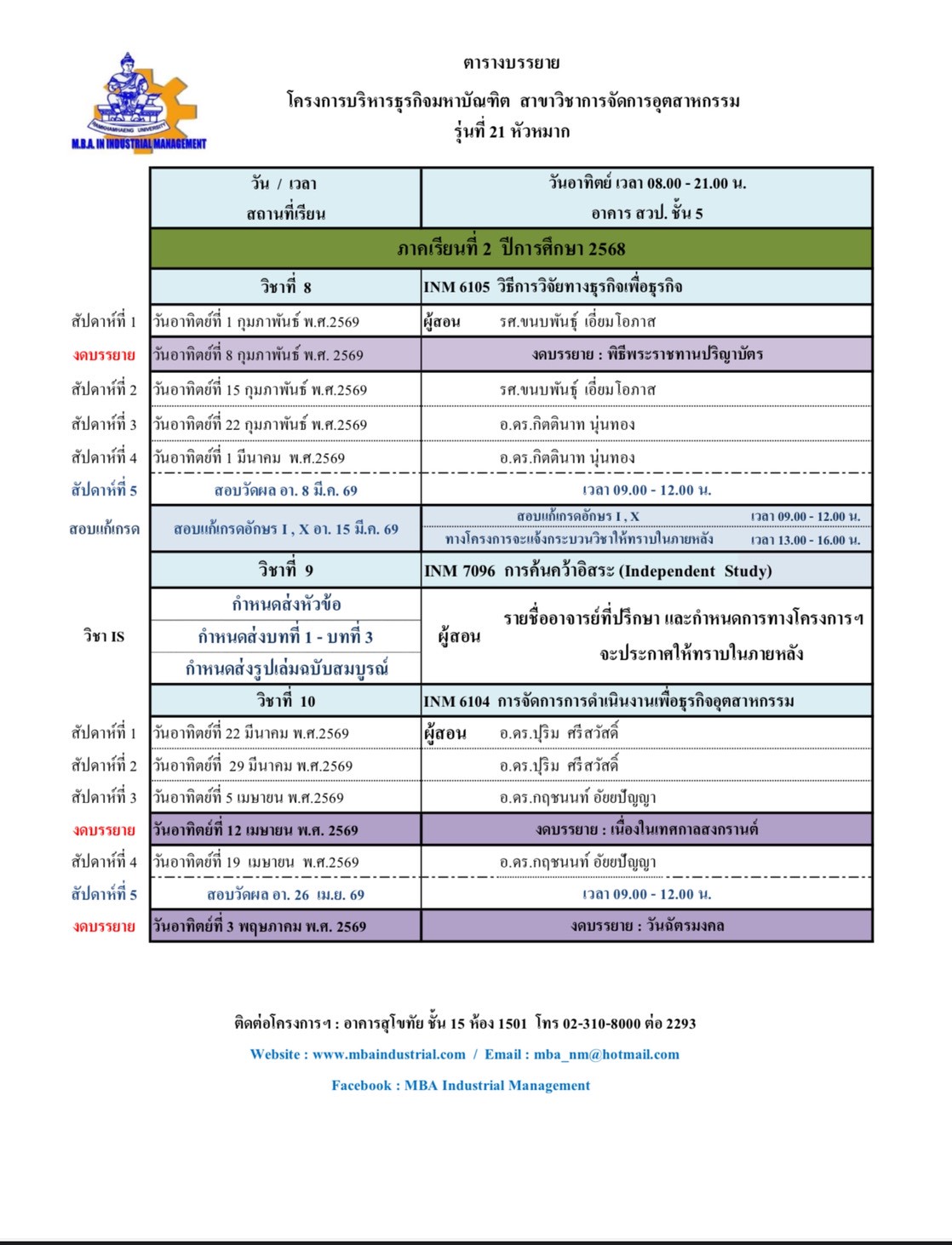📄 ตารางเรียนวิชาที่ 8- 10 ภาคเรียนที่ 2 ปีการศึกษา 2568